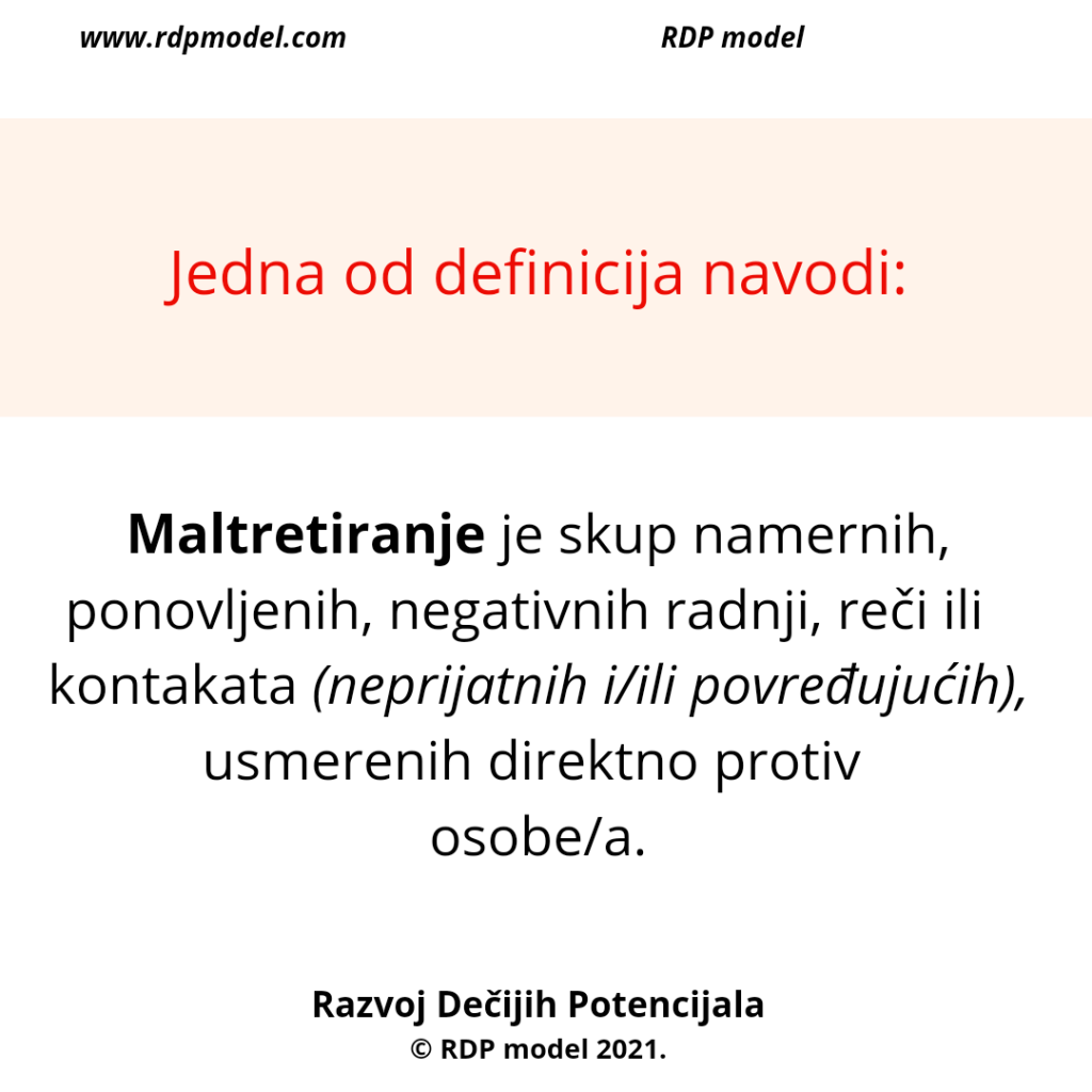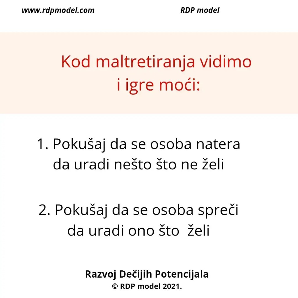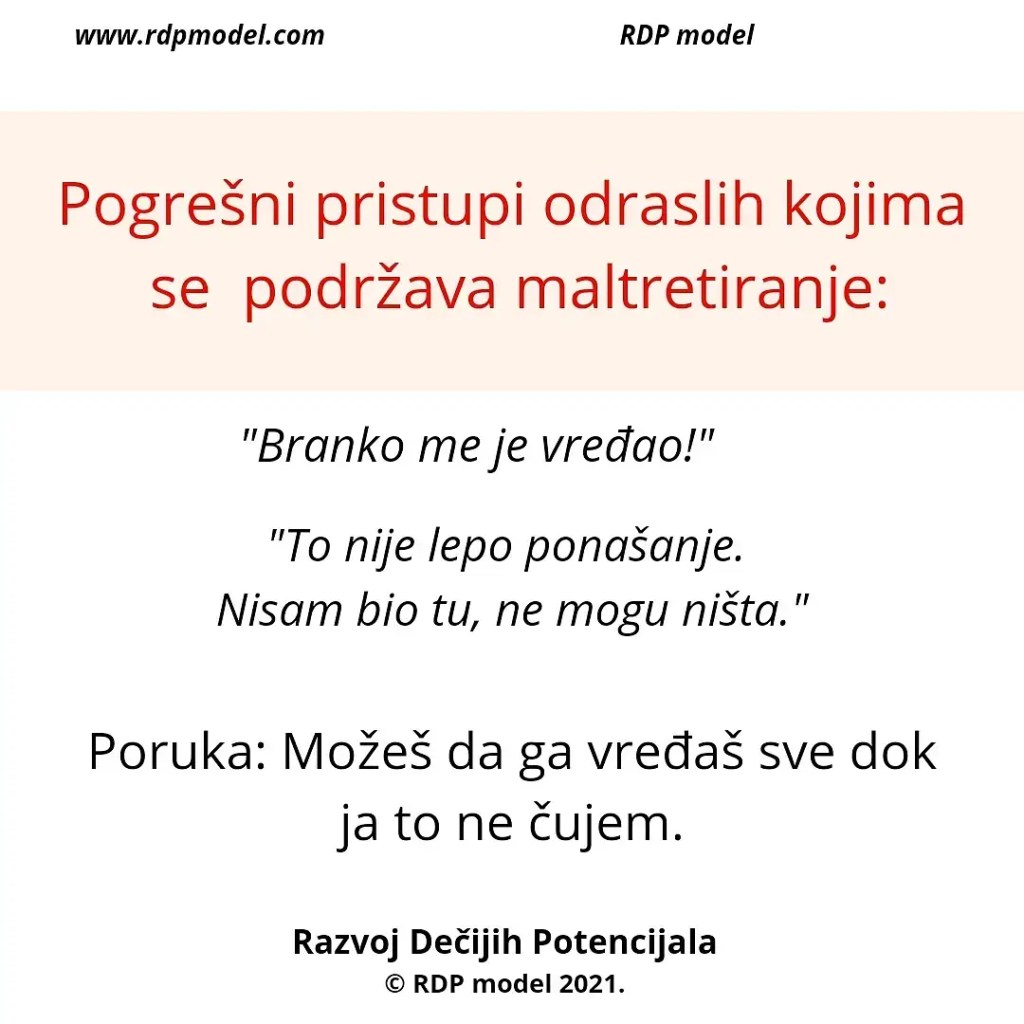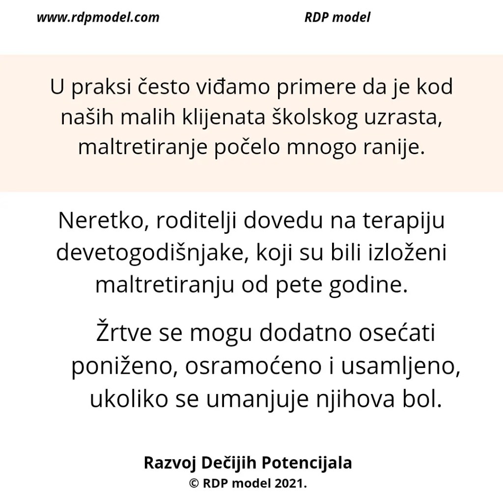 Primer: Vaspitač koji zastrašuje trogodišnjakinju da mama neće doći po nju ako nastavi da plače, ili roditelj koji preti detetu da će ga istući ukoliko ne prestane da plače