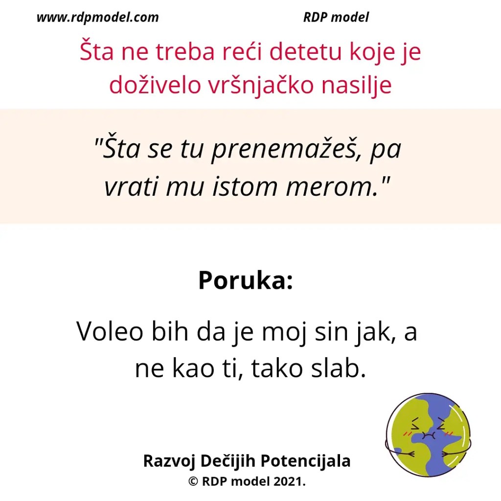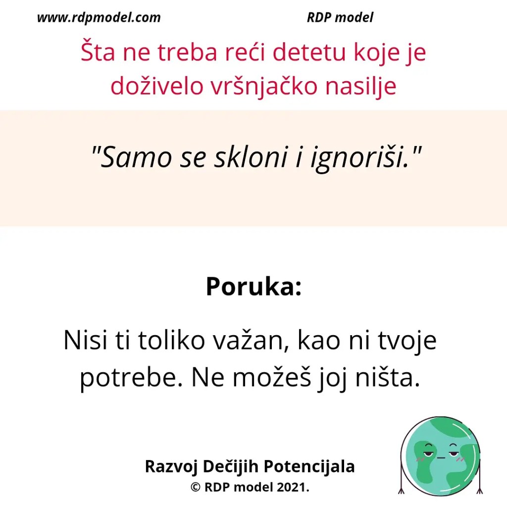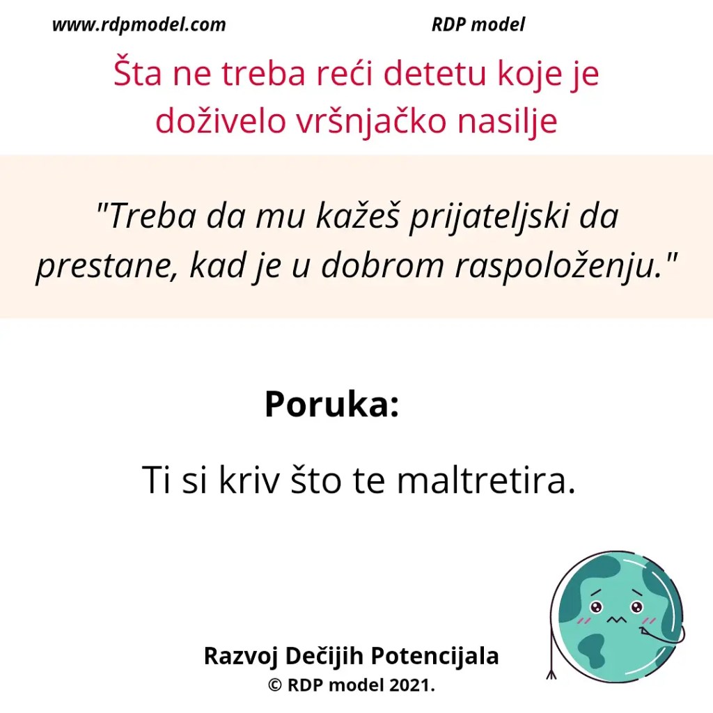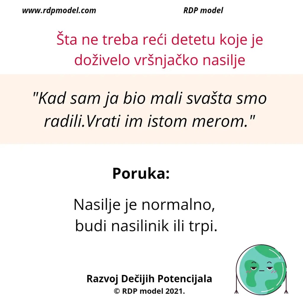 Primer: Vaspitač koji zastrašuje trogodišnjakinju da mama neće doći po nju ako nastavi da plače, ili roditelj koji preti detetu da će ga istući ukoliko ne prestane da plače