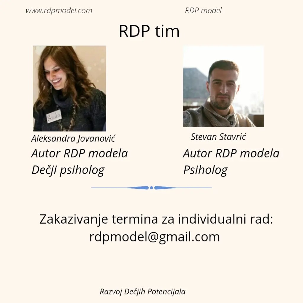 Zazivanje individualnih sesija sa decom ili odraslima na: rdpmodel@gmail.com
