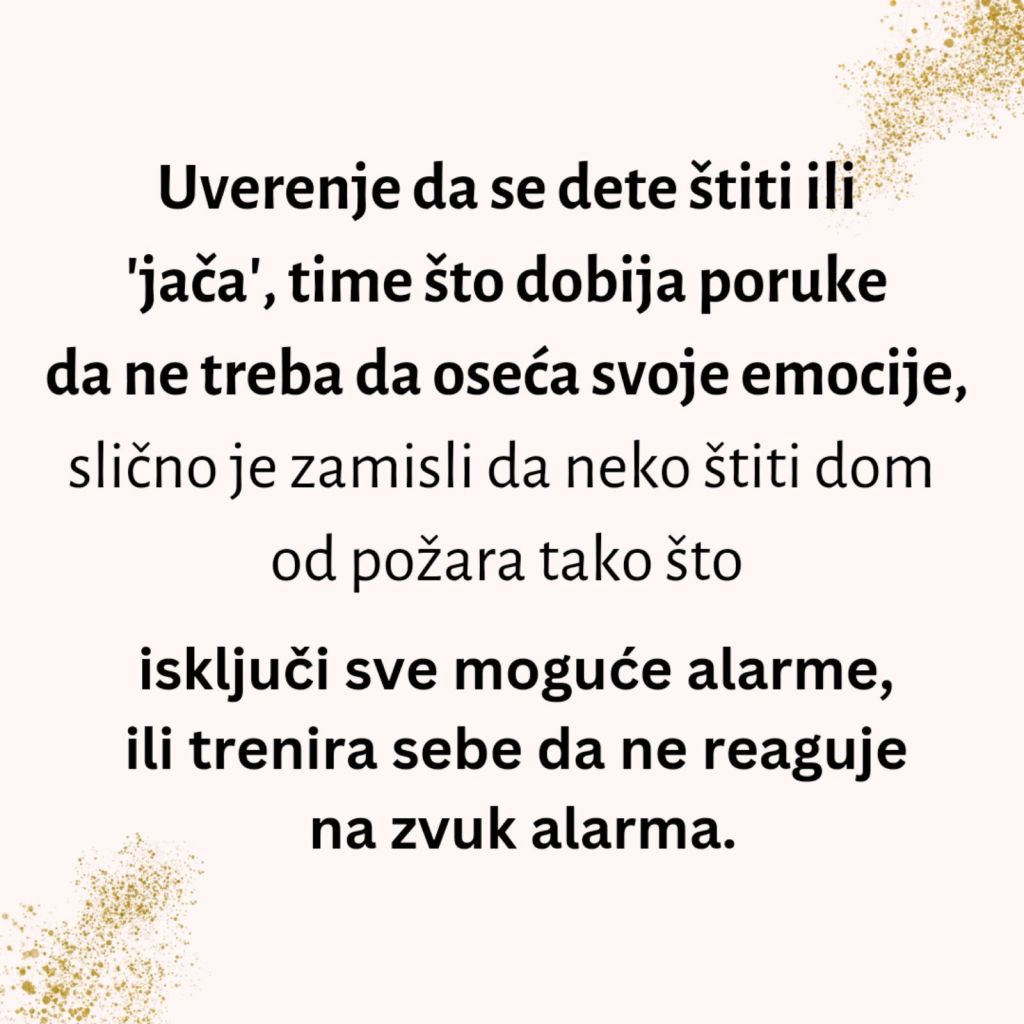 – Iz dobre namere i pogrešnog uverenja da se dete time ‘štiti’ ili ‘jača’, odrasli mogu govoriti da nema razloga da dete oseća ljutnju, tugu ili strah.